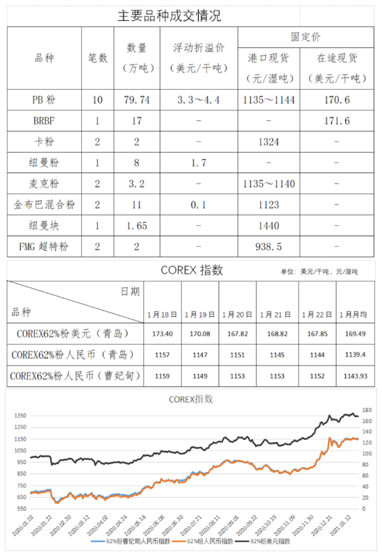 1月18日~22日成交35筆共150.62萬(wàn)噸,其中在途6筆共102萬(wàn)噸,港口29筆共48.62萬(wàn)噸。