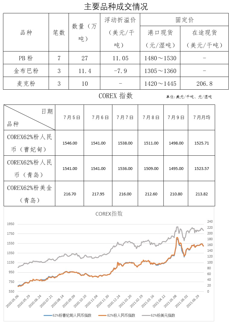 7月5日-7月9日成交20筆共53.4萬噸,其中在途3筆34萬噸,港口17筆19.4萬噸。