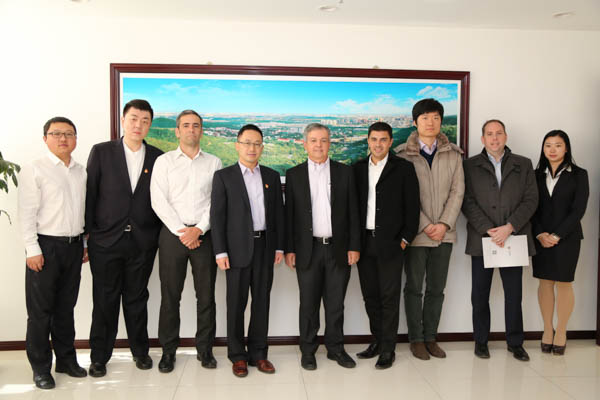 2017年3月2日,游松總裁會見淡水河谷礦產品(中國)有限公司業務發展總監艾森喬先生 (Mr. SergioEspeschit)、北京代表處首席代表艾杰龍先生(Mr. PhilipA.J. Nichols)、淡水河谷國際有限公司新加坡公司鐵礦市場部經理愛德華多先生(Mr.EduardodeMelloFranco)等一行五人,雙方就推進雙邊合作和共同關心的話題進行深入交流。