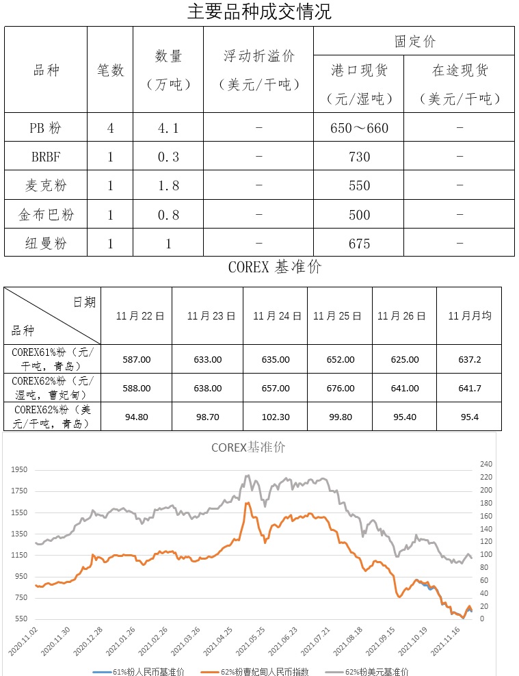 11月22日-11月26日成交10筆共11.4萬噸,均為港口現貨成交