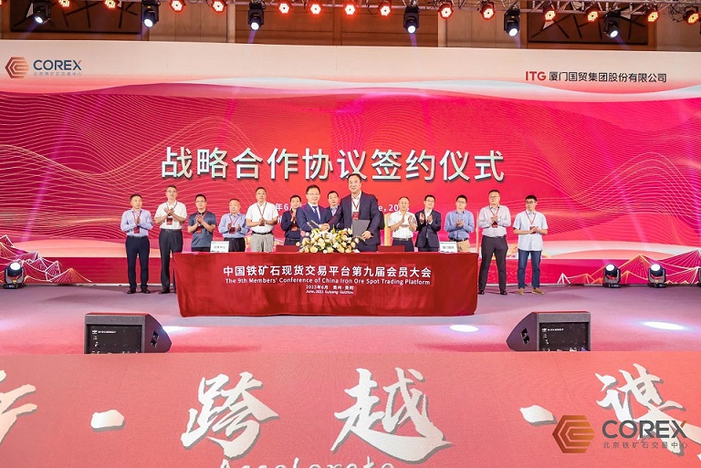 2023年6月15日,北京鐵礦石交易中心(簡稱“北鐵中心”)與廈門國貿(mào)集團股份有限公司(簡稱“國貿(mào)股份”)舉辦戰(zhàn)略合作協(xié)議簽約儀式,公司總裁游松及廈門國貿(mào)礦業(yè)有限公司總經(jīng)理李鵬代表雙方簽署協(xié)議,中鋼協(xié)總經(jīng)濟師王穎生、五礦商會副會長錢景汾、中國礦產(chǎn)資源集團鐵礦事業(yè)部資源平衡總監(jiān)劉政群等領(lǐng)導共同見證簽約。