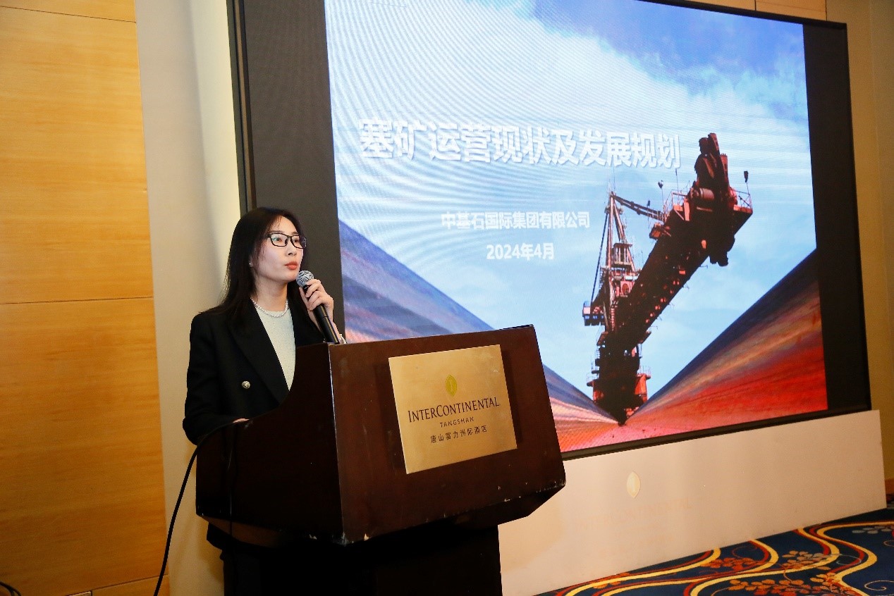 中基石國際集團有限公司運營部經理李楊做題為《塞礦運營現狀及發展規劃》的演講,介紹了西非、塞拉利昂鐵礦資源,當地礦石開采、鐵路和港口等基礎設施運營,以及相關產品規格、定價等情況。